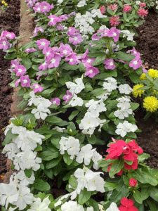 最後はニチニチソウ。色とりどりに咲いています。花言葉は楽しい思い出・友情