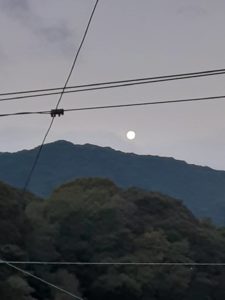 今年の中秋の名月(9月21日)は満月と同じ日になりました。福岡は、夜から雨、という事で、夕方から雲が立ち込め「お月見は無理かなぁ」と思っていましたが、きれいな月を見ることができました。